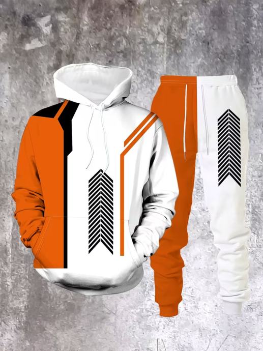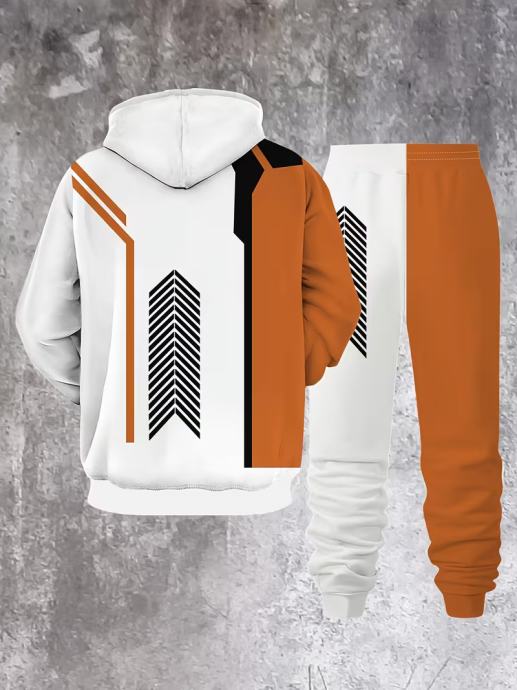 Proljetni i jesenski muški set majice s kapuljačom s jedinstvenim geometrijskim digitalnim printom, uključujući majicu s kapuljačom i trenirku u dvodijelnom odjevnom kompletu.