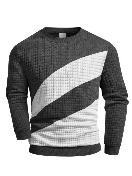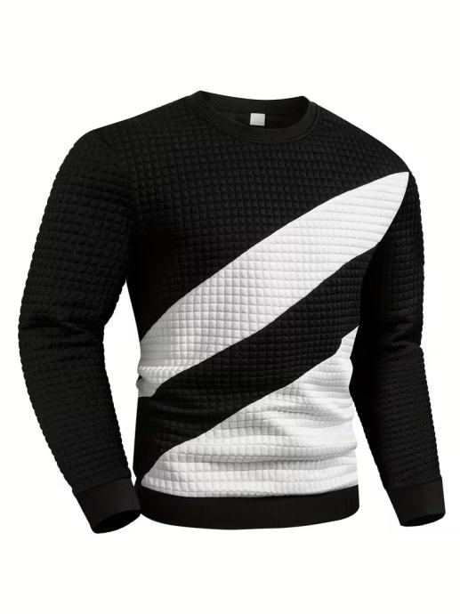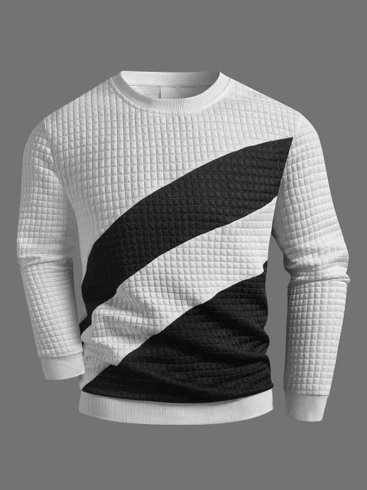 Proljetno/jesenski novi crno-bijeli pulover s okruglim izrezom u boji, muški, dugih rukava, svestran komad odjeće