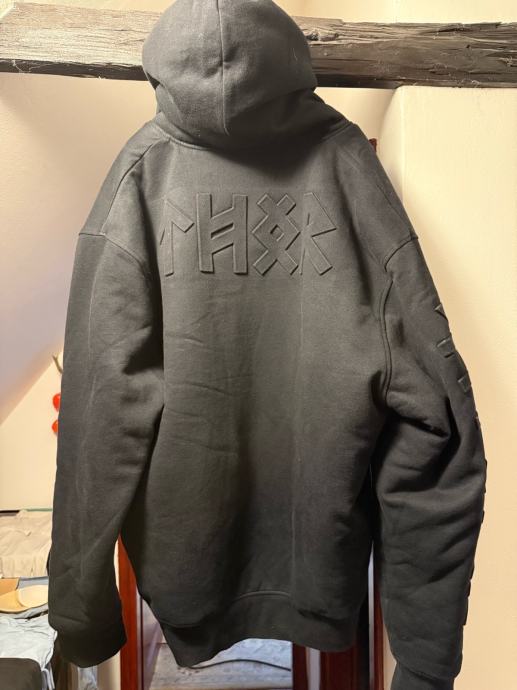 Prodajem malo nošenu Thor Steinar toplu hudicu s kapuljačom u crnoj boji veličine 4XL. Izrađena je od kvalitetnog pamuka i ima prepoznatljiv Thor Steinar logo. Iznutra je podstavljena mekanim materijalom koji pruža dodatnu toplinu i udobnost.