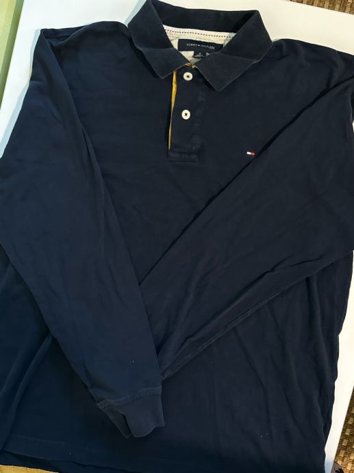 Originalna Tommy Hilfiger plava polo majica dugih rukava, veličine M. Rabljena ali i dalje u odličnom stanju, s prepoznatljivim logom na prsima.