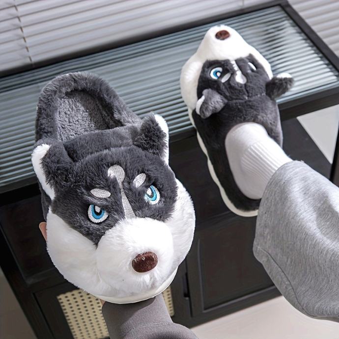 Papuče s haskijevim | Plišana tkanina za unutarnju/vanjsku upotrebu s EVA potplatom | Udobna zimska obuća za muškarce i žene | Slatki životinjski dizajn | Tople, udobne kućne papuče za jesen i zimu, papuče za unutarnju upotrebu