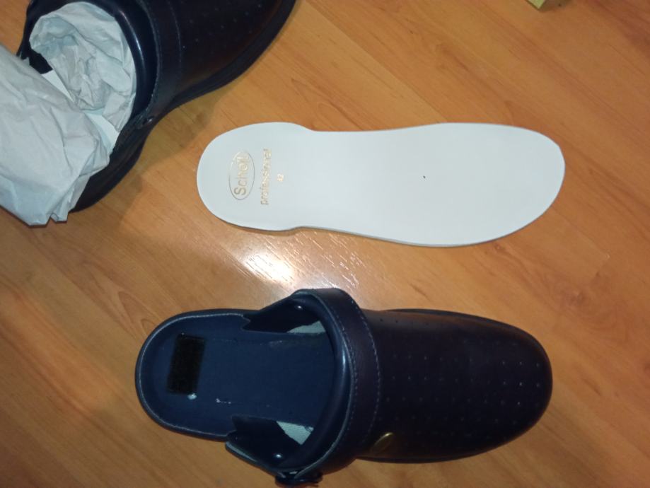 Razvikane papuče, broj 42, sa odstranjivim ulošcima, slavna marka; nosio sam ih tek desetak minuta, da bih shvatio da su mi ipak preuske, odnosno odgovara mi više broj 43. Nisam ih zamijenio na vrijeme, to jest, unutar tjedan dana. Cijena je, kao što možete vidjeti na računu, 50 eura. Prodajem ih za simbolčkih 5 eura. Uzmite ili ostavite.