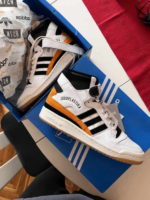U karakterističnim crnim i žutim bojama tima, ove ekskluzivne Adidas x BSTN Forum High povezuju se s erom dominacije Jugoplastike Split s posebnom etiketom na peti (89-90) i timskim brendom na gležnju.