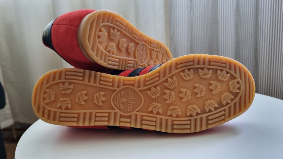 Tenisice su iz 2015. godine, kupljene u UK. Boja tamnocrvena sa crnim i zlatnim akcentima, brušena koža/antilop.