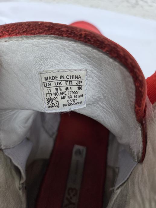 Adidas - Y3 model Honja Hi muške visoke tenisice FR 45 i 1/3 - US 11- UK 10.5 sa unutarnjim gazištem od prave kože 29 cm - EUR 44.5...eksterijer i interijer meka, tanka prava koža10 mm đonovi- još uvijek drže full iako su tenke made in China .....sve OK osim sasvim malo izlizan vanjski rub petnog dijela đonova- 2 mm...cijena crnih na Goat-u - 800 dolara....pogledate i ostale moje oglase..