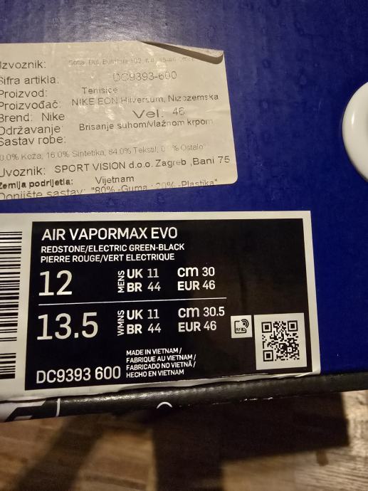 Tenisice Air Vapormax EVO. Broj 46. Novo i nenošeno. Tenisice su original, kupljene u SportVision-u.