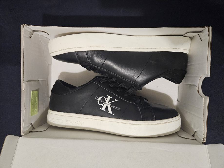 Prodajem malo nošene Calvin Klein kožne tenisice u crnoj boji, veličine 44. Elegantnog su dizajna s prepoznatljivim CK logom na strani i bijelim potplatom. Idealne su za svakodnevno nošenje i savršeno kombiniranje s različitim outfitima.