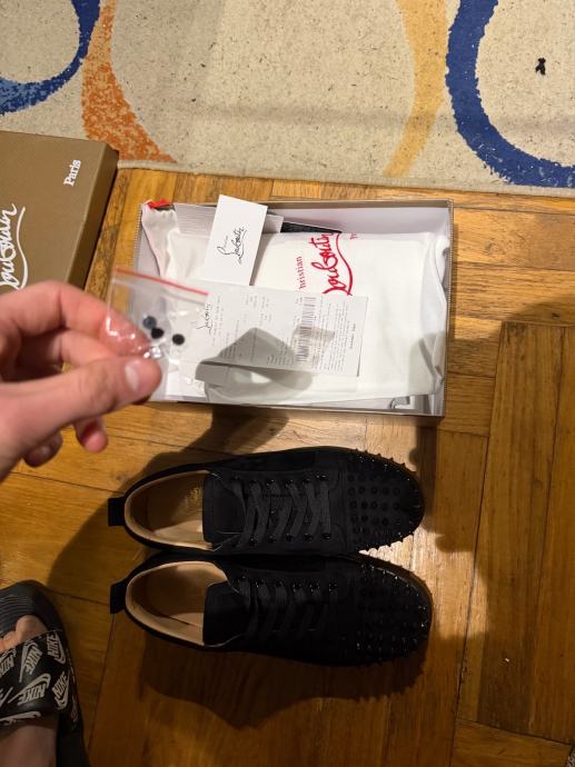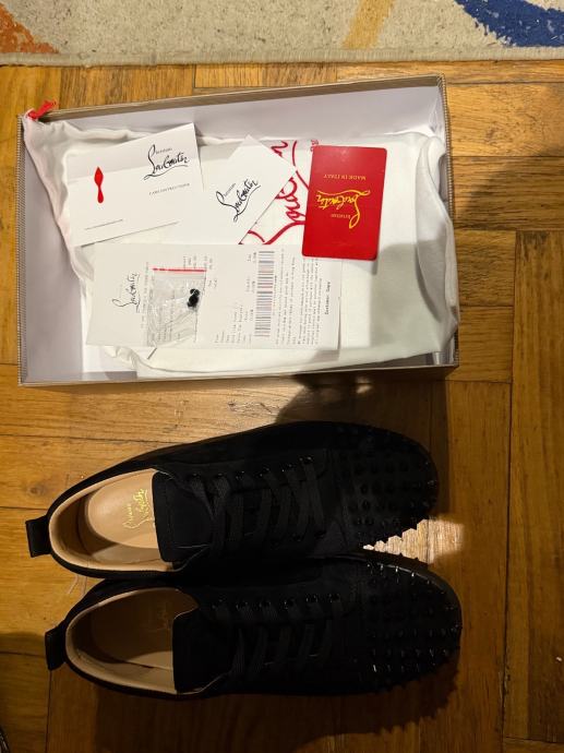 Prodajem potpuno nove Christian Louboutin tenisice od crne brušene kože u veličini 45. Tenisice imaju prepoznatljiv dizajn s detaljima bodlji i nošene su jedamput, dolaze s originalnim dokumentima.