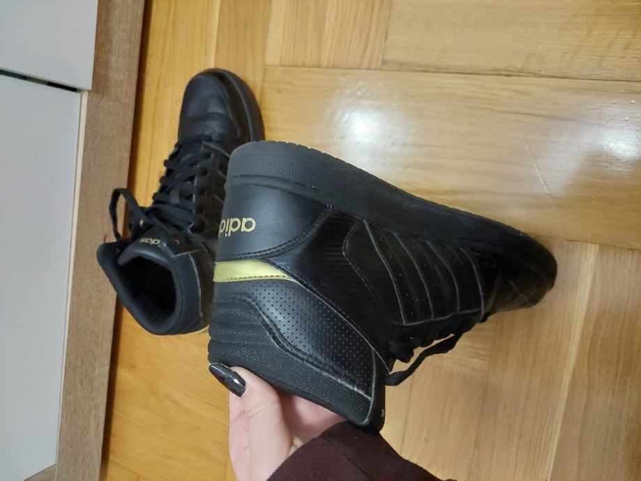 Crne adidas tenisice pise velicina 40, ali su više 39 imaju zlatne detalje iza nosene jednom,
