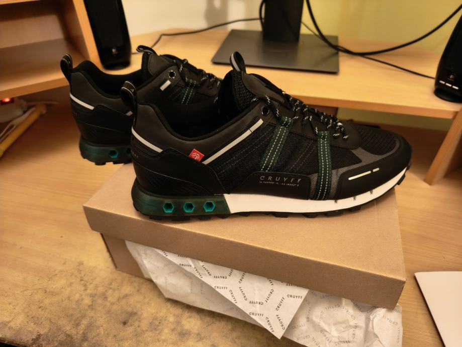 Prodajem potpuno nove Cruyff Inter Lace Montserrat muške tenisice u crnoj boji sa zelenim detaljima, veličine 46. Tenisice su još uvijek s etiketom, nikad nošene i u originalnom pakiranju.