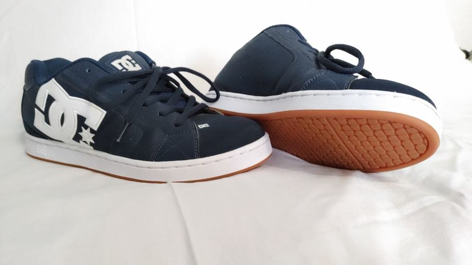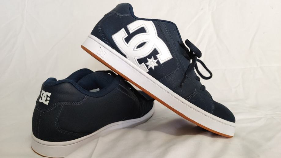 Prodajem DC patike skejterice u veličini 43, stanje novo bez etikete. Radi se o originalnim, genuine DC Shoes tenisicama u tamno plavoj boji s karakterističnim bijelim DC logom na boku. Potplat je u guma/karamel tonu, tipičnom za ovaj model. Gornji dio je izrađen od kombinacije materijala s ojačanjima na ključnim dijelovima, što je prepoznatljiv stil DC Shoes skate brenda.
