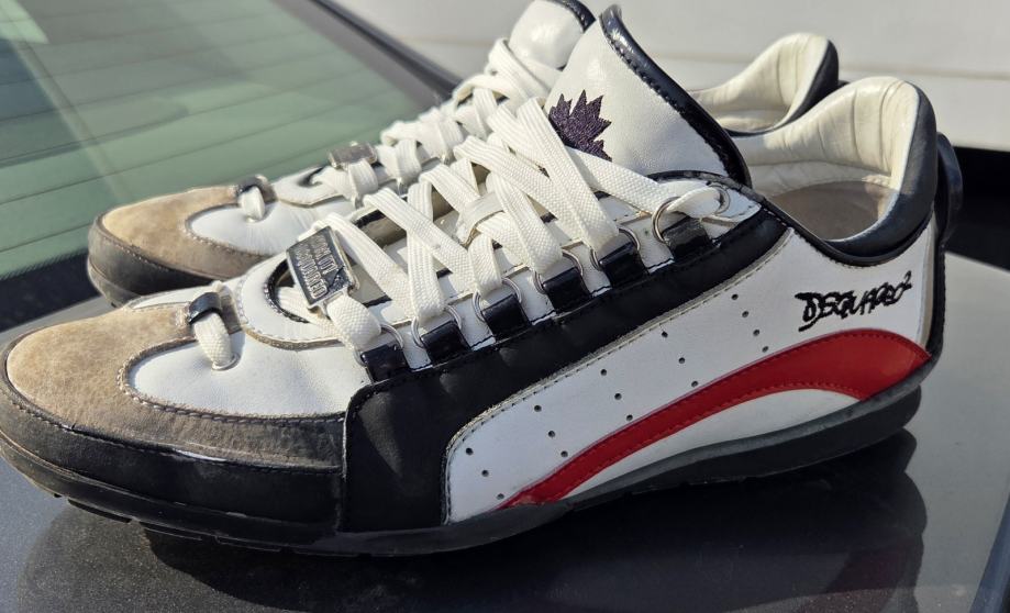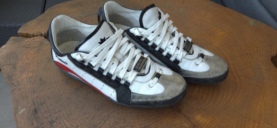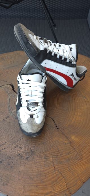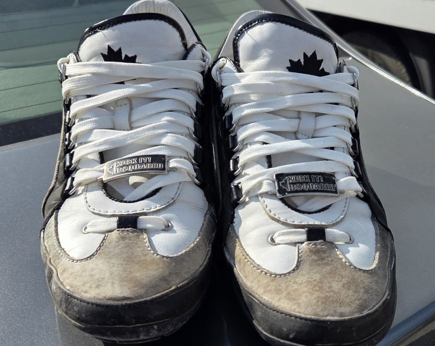 Prodajem muške tenisice Dsquared2 u bijeloj boji, izrađene od kože. Radi se o modelu 551, veličine 44. Karakterizira ih prepoznatljiv dizajn s potpisom brenda i detaljima koji su tipični za Dsquared2 stil.