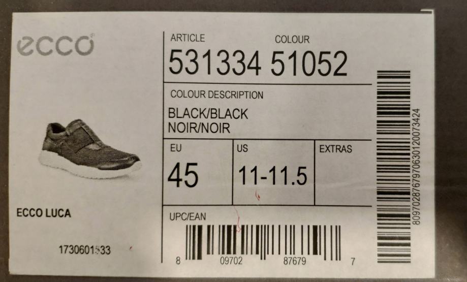 Ecco Luca, crne kožne muške tenisice, br. 45 "*" Nove u Kutiji *"*, nikada nošene, u original kutiji. Duljina gazišta 29,5 cm.