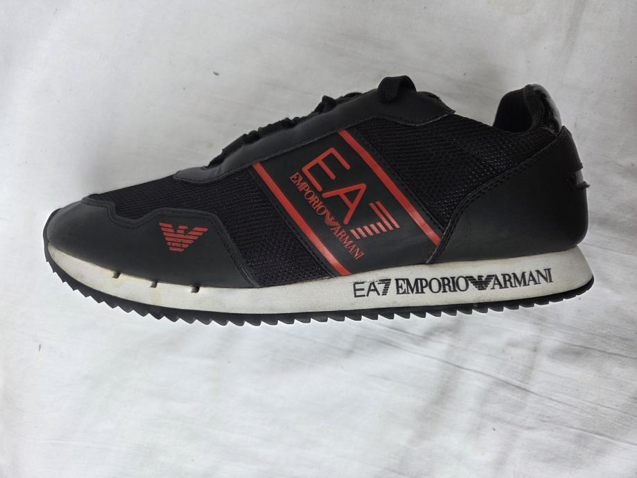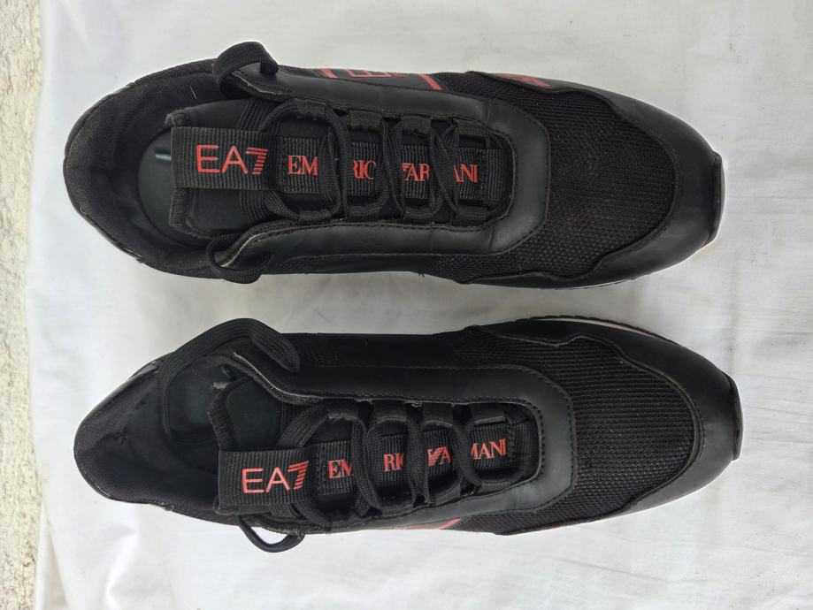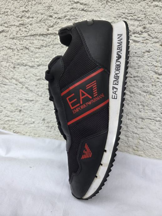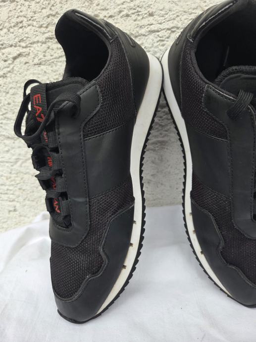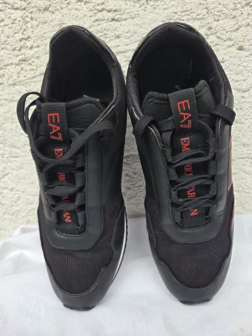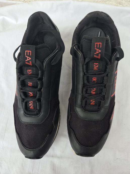 Emporio Armani muške tenisice EUR 43 sa unutarnjim gazištem 28 cm....eksterijer koža i tekstil, interijer tekstil....čvrsti spoj đonovi - gornjište, hodni sloj đonova nije izlizan....u OK stanju za rabljene.......pogledajte i ostale moje oglase