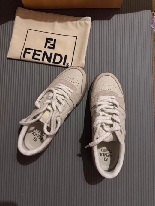 Potpuno nove FENDI tenisice u bež boji, veličine 44, još uvijek s etiketom. Stilski dizajnirane s prepoznatljivim FENDI logom i dolaze s originalnom vrećicom za pohranu. Savršen izbor za muškarce koji cijene luksuznu obuću i žele dodati elegantan detalj svojoj svakodnevnoj odjevnoj kombinaciji.