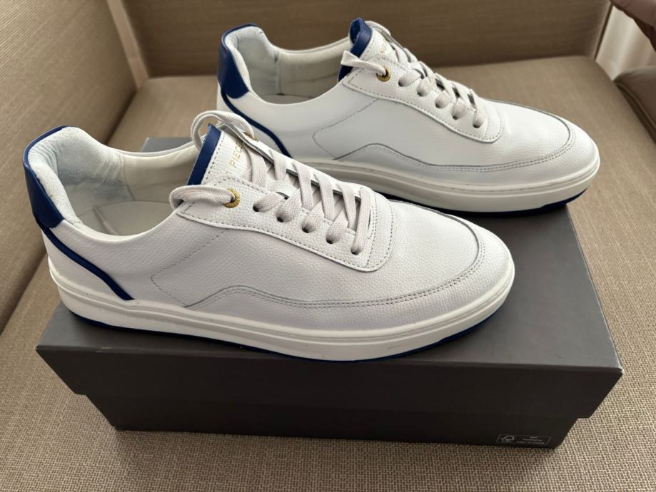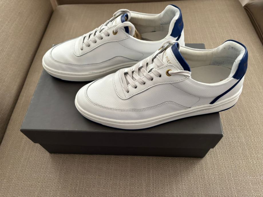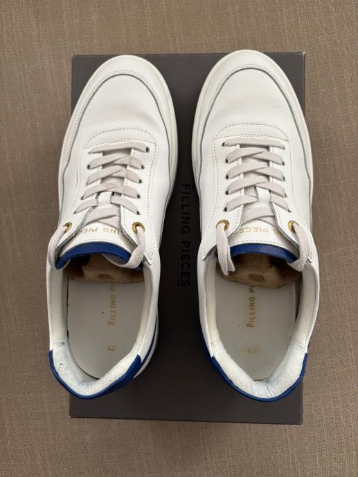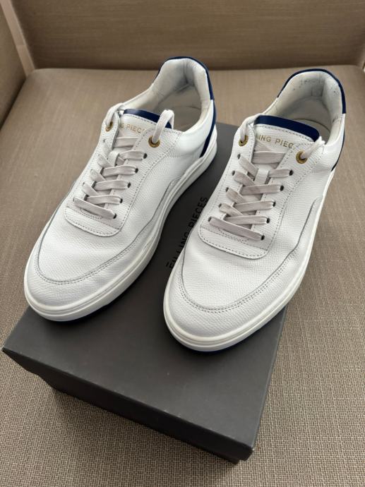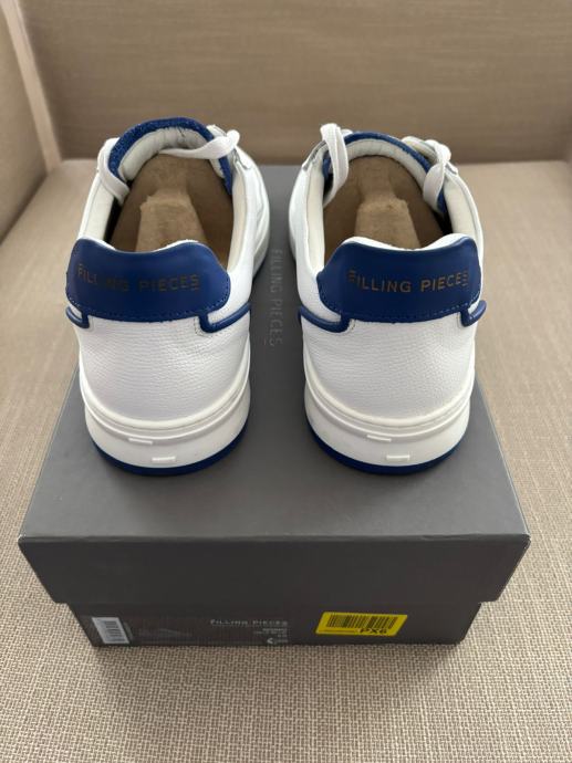 Prodajem jednom nošene tenisice Filling Pieces Mondo Dela Blue broj 42, u izvrsnom stanju, bez ikakvih oštećenja. Filling Pieces tenisice su kalupom broj veće od standardnih tenisica, stoga je ovo više tenisica broj 42.5 - 43. Boja je bijela s kraljevsko-plavim crtama, a materijal koža.
