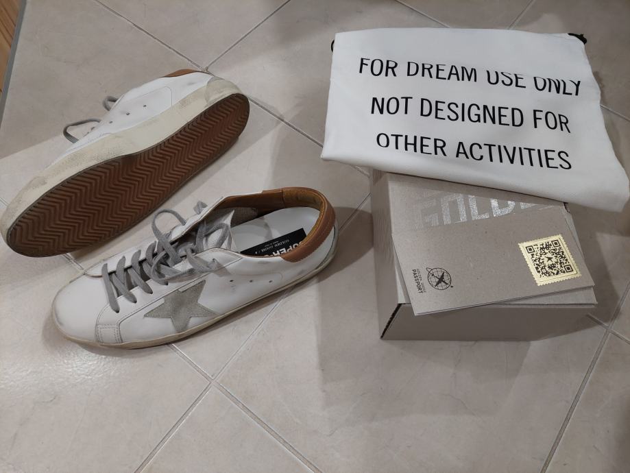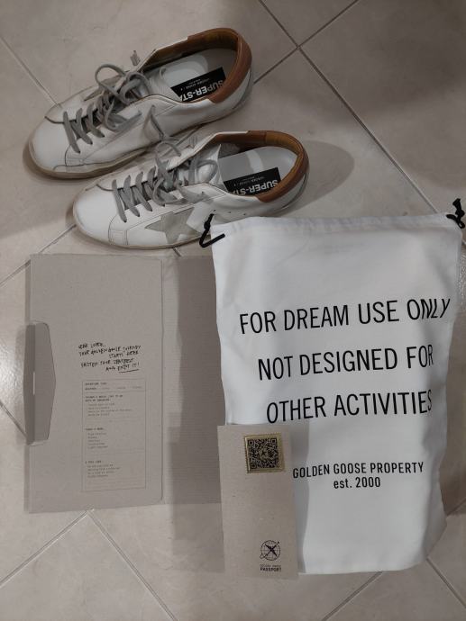 Prodajem Golden goose super-star tenisice muške, broj 45. Tenisice su originalne i kupljene u XYZ trgovini u Zagrebu, te posjedujem račun. Nošene su svega nekoliko puta i odlično uščuvane (kao nove) što je vidljivo na fotografijama.