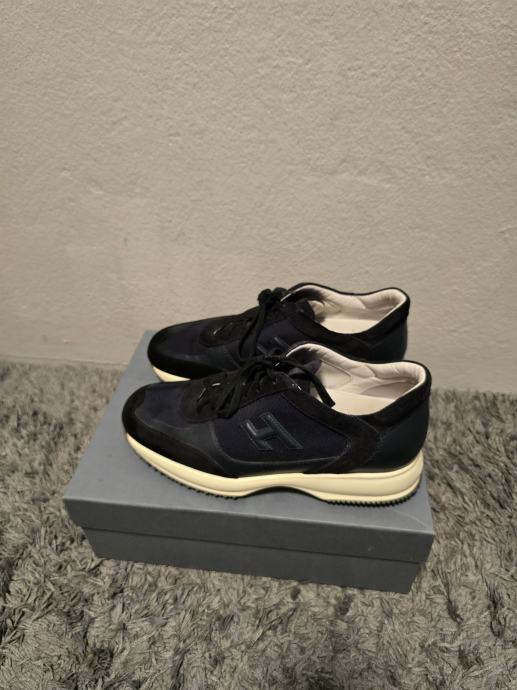 Prodajem muške Hogan patike u plavoj boji, izrađene od kože. Radi se o klasičnom modelu s prepoznatljivim H logotipom sa strane i bijelim đonom. Veličina je 44.5.