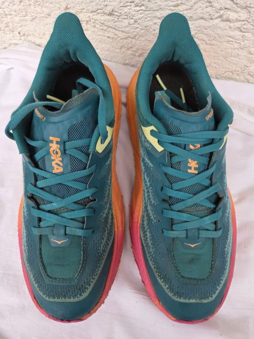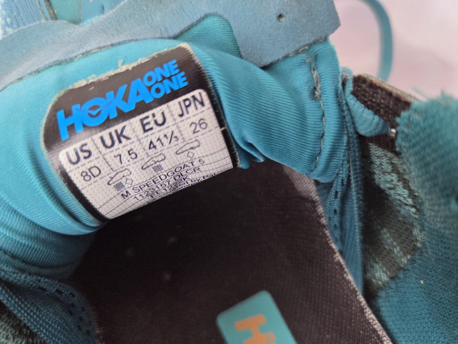Hoka Speedgoat 5 tenisice made in Vietnam original EUR 41.5- US 8D- UK 7.5 sa unutarnjim gazištem 26 cm...uredne i čvrste, hodni sloj đonova pristojan....pogledajte i ostale moje oglase