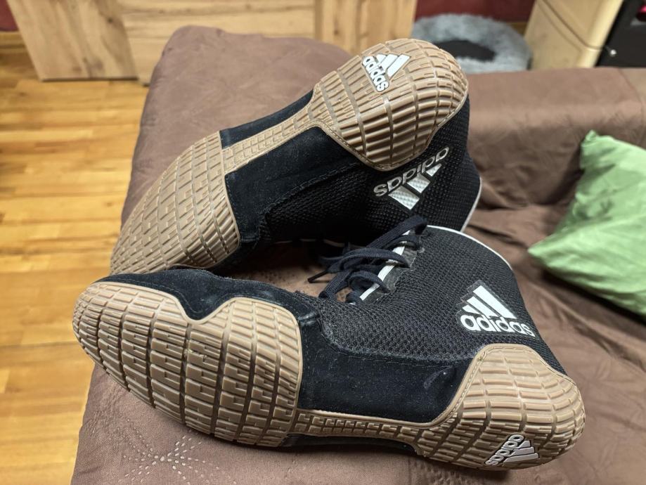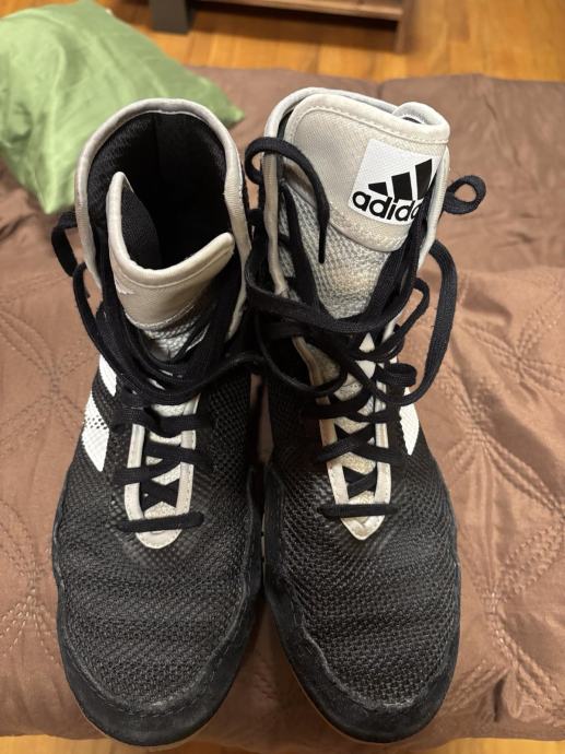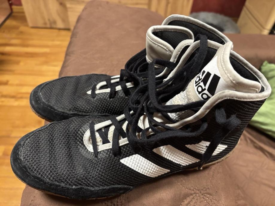 Prodajem Adidas hrvaške tenisice u crnoj boji, veličina 42.5. Riječ je o cipelama za hrvanje s visokim potplatom i odličnim prianjanjem. Tenisice imaju pojačanu potporu gležnja i prozračan gornji dio od mrežastog materijala. Bijeli detalji i logotip dopunjuju sportski dizajn. Potpuno funkcionalne i spremne za uporabu. Mogu poslužiti i i za boks.