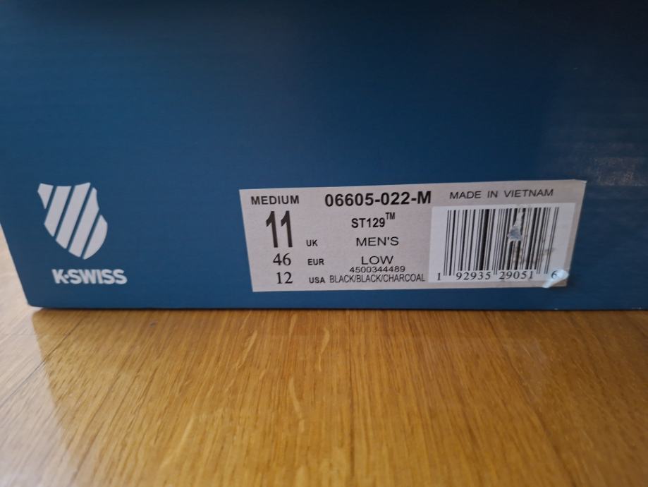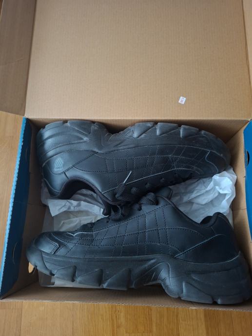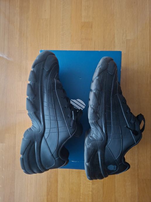Prodajem rabljene K-Swiss ST-129 tenisice u crnoj boji, veličine 46. Klasičan sportski model koji je izdržljiv i udoban za svakodnevno nošenje. Tenisice su u dobrom stanju s originalnom kutijom.
