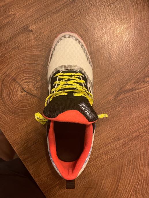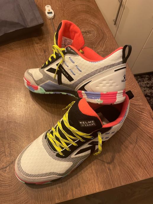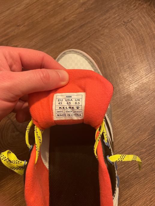 Prodajem rabljene Kelme Hawk tenisice u veličini 43 28.5 cm s upečatljivim dizajnom. Tenisice imaju bijelu bazu s crnim detaljima, neonsko žute vezice i atraktivne narančaste unutarnje dijelove. Udobne su i idealne za svakodnevno nošenje ili sportske aktivnosti.