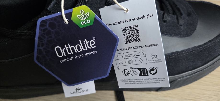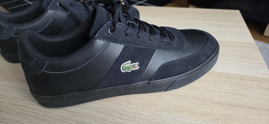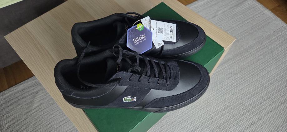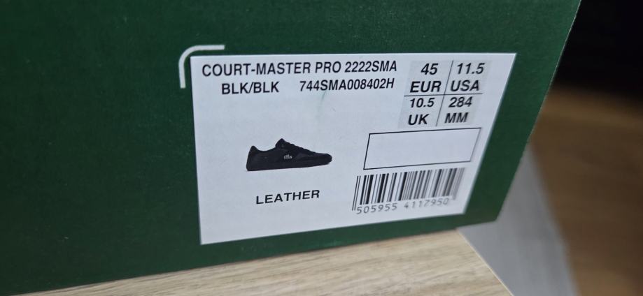Potpuno nove Lacoste Court Master Pro tenisice u crnoj boji, veličina 45, s originalnom etiketom. Izrađene su od kombinacije prave kože i tekstila s gumenim potplatom za odličnu udobnost i izdržljivost. Idealne su za svakodnevno nošenje i sportske aktivnosti. Kupljen prevelik broj. Nikad nošene. U dućanima je cijena 140 eur.