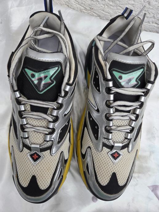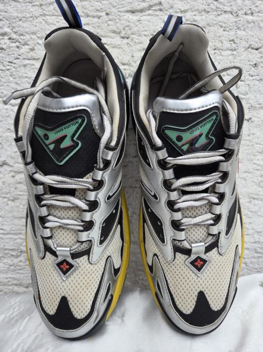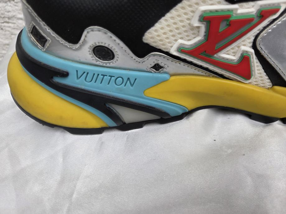 Louis Vuitton Runner Tatic Multicolour muške tenisice made in Italy 2022., original US 9 sa unutarnjim gazištem 28 cm i kalupom koji odgovara EUR 42.5 ( može 43 na tanke čarape ) )..ser.broj MS1201....... nošene jednu sezonu povremeno - odlično stanje...... cijena za nove obične bijele, jednobojne, je 1700 dolara - uobičajena internetska cijena za Multicolour modele je 2000 dolara na ebay, pa na više......pogledajte i ostale moje oglase