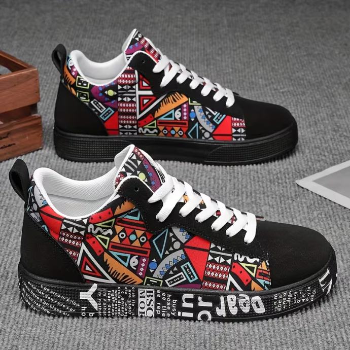 MAINALUN Muške niske tenisice - Lagane tenisice s udobnim PVC potplatom, vezicama, tenisice za teretanu, skateboarding i trčanje tijekom cijele godine - Crvena/Crna/Bijela kombinacija boja - Prozračna tkanina i sintetički gornji dio za svakodnevno i formalno nošenje - Urbana ulična obuća, tenisice za teretanu, geometrijski uzorak, udoban kroj, svestrane tenisice, aktivan stil života, sportski dizajn, izdržljiva konstrukcija, tenisice za performanse, fitness entuzijasti