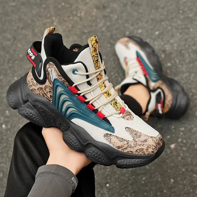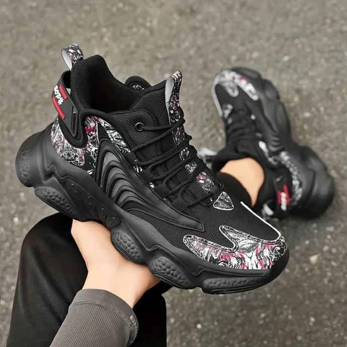 Muške elegantne niske tenisice - crno-bijela kombinacija boja sa zlatnim detaljima, gornjište od prozračne tkanine, potplat od gume s jastučićima, ležerne cipele s vezicama za ležernu odjeću, planinarenje i aktivnosti na otvorenom, obuća za planinarenje, moderne tenisice, izdržljiva obuća.