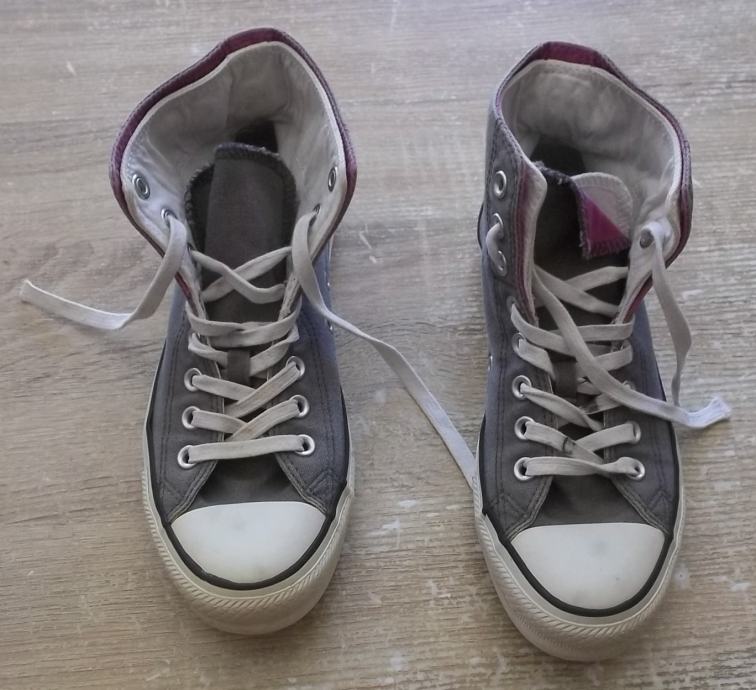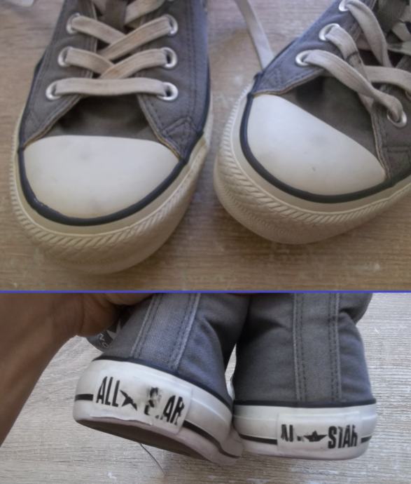 Prodajem rabljene muške tenisice nalik Starsicama, ne razumijem se u originale i ne mogu garantirati u autentičnost. I malo je izlizan logo od iza i to je najveći razlog niske cijene (5 €). Ako kome pašu i ovakve, bit će mi drago da se nose. Kod nas u kući nitko ne nosi tu veličinu. Deklarirana vel. je 6.5, što bi bilo naški 38.5, odnosno gazište je 25 cm. Vjerujem da bi mogle proći i kao unisex model, lijepo bi stajale i na ženi. Vrlo malo su izlizane odozdol, praktički bez vidljivih tragova nošenja, osim tog loga od iza. Jako dobro očuvane. Boja bi bila nešto između tamnozelene i sive, onako pepeljasta. Ako Vam se sviđaju, moguća je zamjena za razno. Preferiram potrošno.
