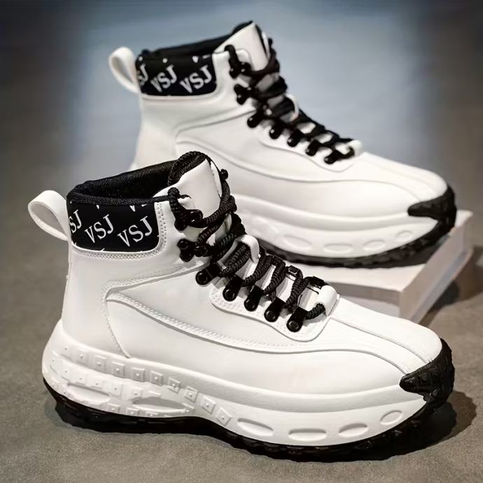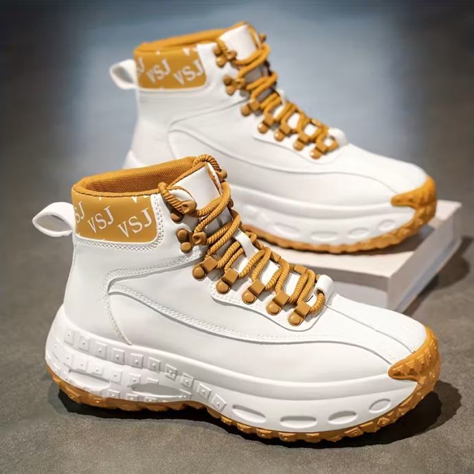 Muške visoke tenisice - gornjište od PU-a i PVC potplat, sjajne bijele/zlatne cipele s vezicama i debelim gaznim slojem za proklizavanje - urbana ulična odjeća za sva godišnja doba i ležerna obuća nalik čizmama (bez ovratnika)