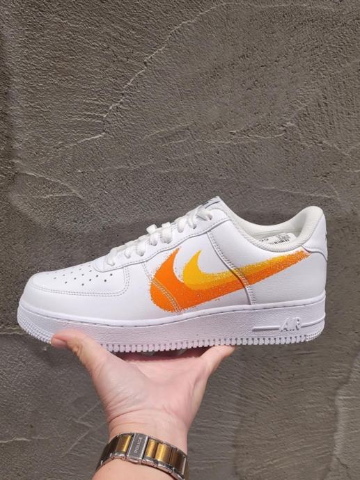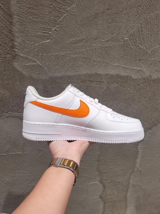 Prodajem original Nike Air Force 1 Low u bijeloj boji s narančastim Swoosh logotipom. Nikad nošene.