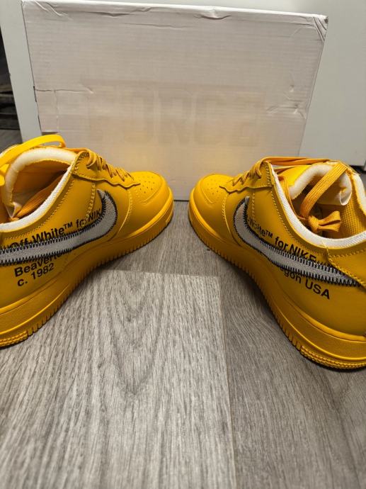 Prodajem potpuno nove Nike Air Force x Off White tenisice, žute boje s etiketom. Veličina 44.5, limitirano izdanje koje dolazi u originalnoj kutiji s dodatnim vezicama. Savršen izbor za ljubitelje ekskluzivne obuće i kolekcionare. Odgovaram samo na poruke