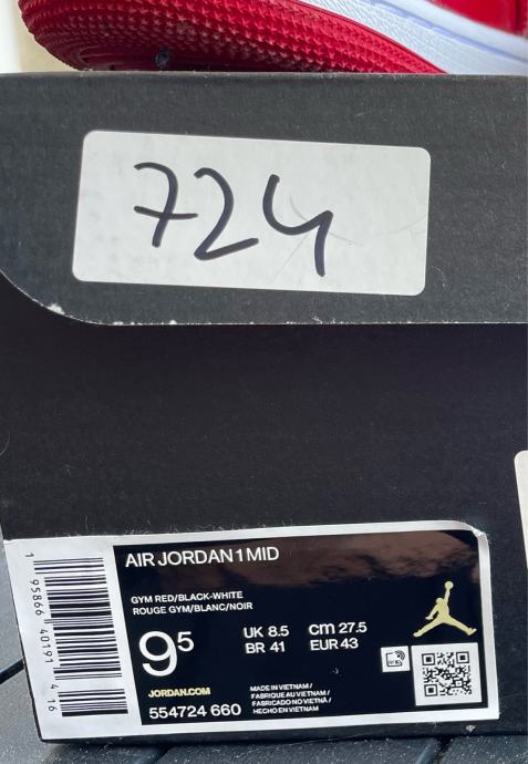 Prodajem Nike Air Jordan 1 mid Gym Red/Black-White tenisice, broj 43, NIKAD NOŠENE‼️