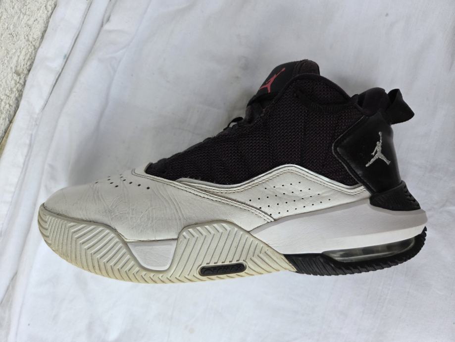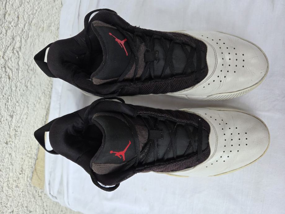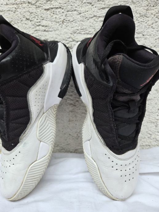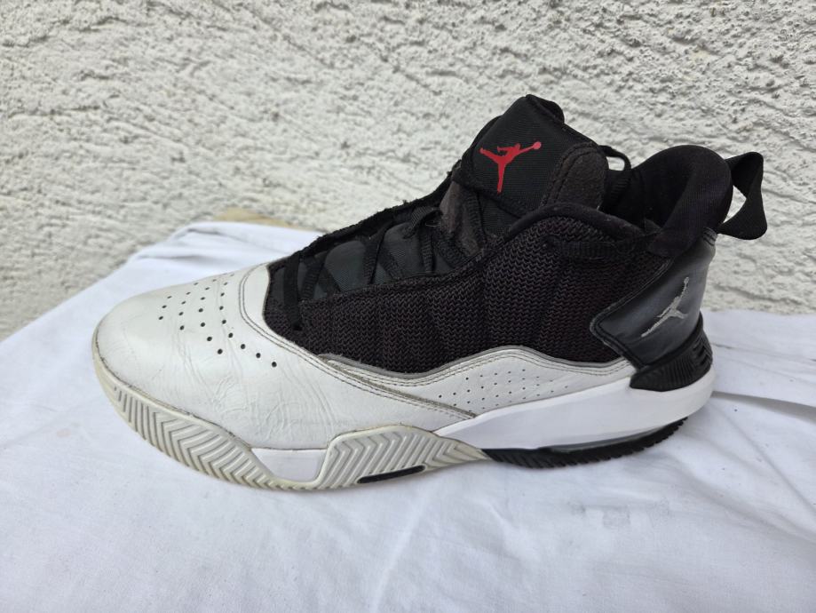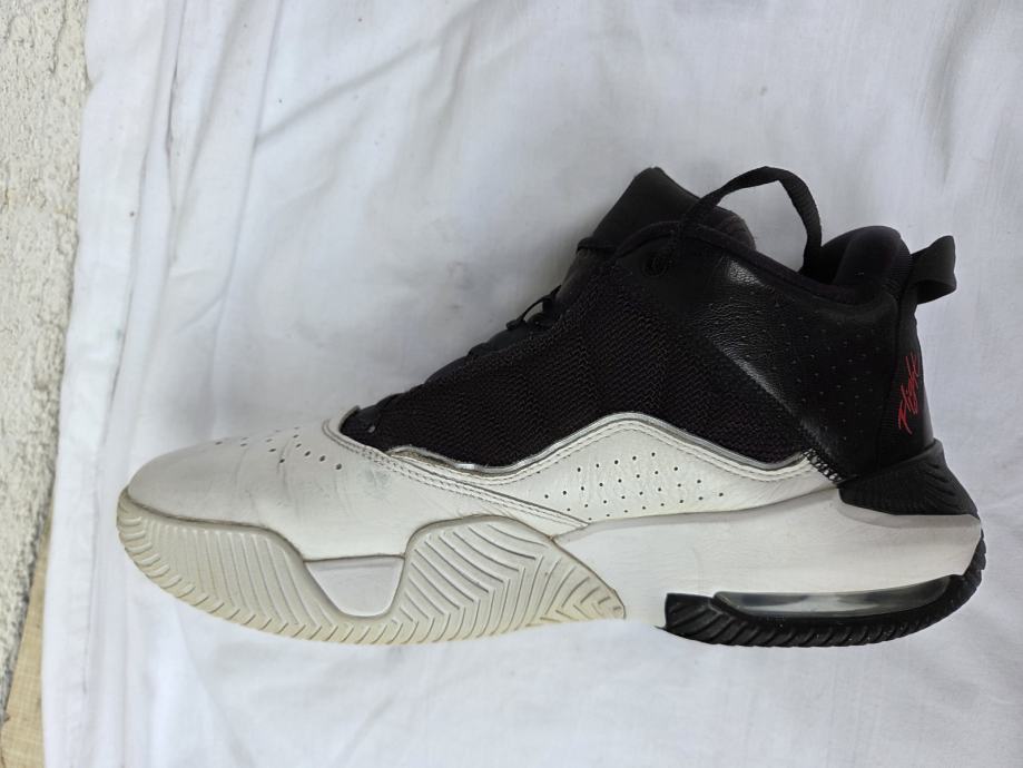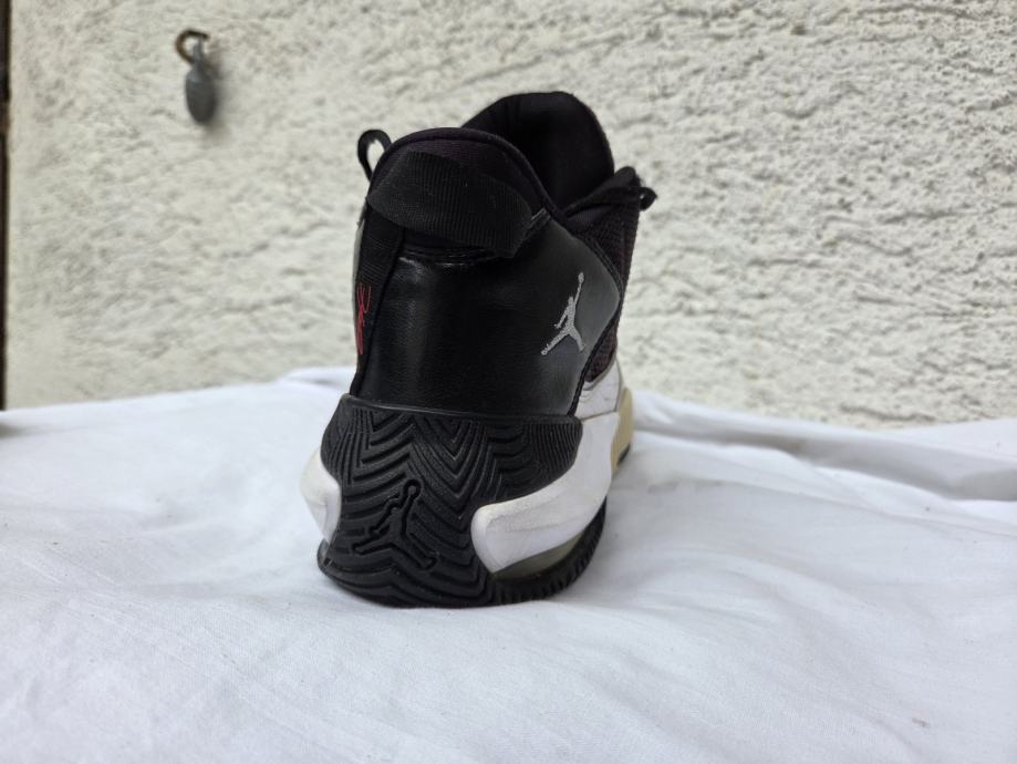 Nike Air Jordan " Stay Loyal " muške tenisice made in Vietnam 2022 original EUR 44.5 - UK 9.5 - US 10.5 sa unutarnjim gazištem 28.5 cm - realni EUR 43 i to jedva - malo ih osjetim sa bočnih strana u najširem dijelu stopala, a prst je 3 mm do vrha ( ja nosim EUR 43 ) ....eksterijer prava kožainterijer tekstil sa međuslojem......nisu često korištene, uredne, čvrste, hodni sloj đonova nije izlizan.....pogledajte i ostale moje oglase