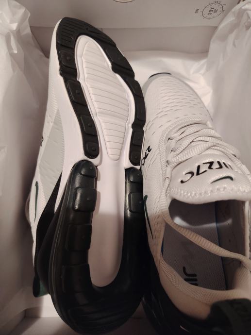 Nike air max 270 br. 42, novo nenošeno, u original kutiji, dobijeno na poklon premalo, nemamo račun pa ne možemo zamijeniti. Boja bijelo-sivo-crno, kraljevski zeleno.