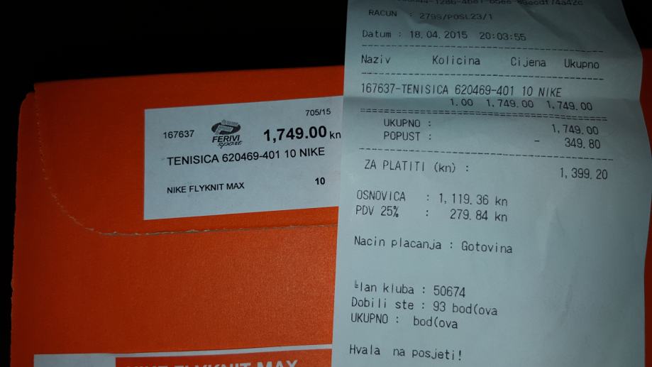Nove original tenisice s kutijom i racunom kupljene u Nike shopu (Tower centar Rijeka)
