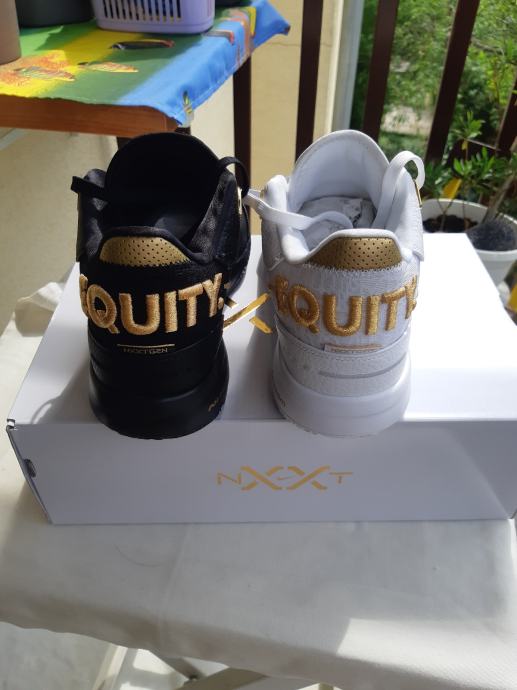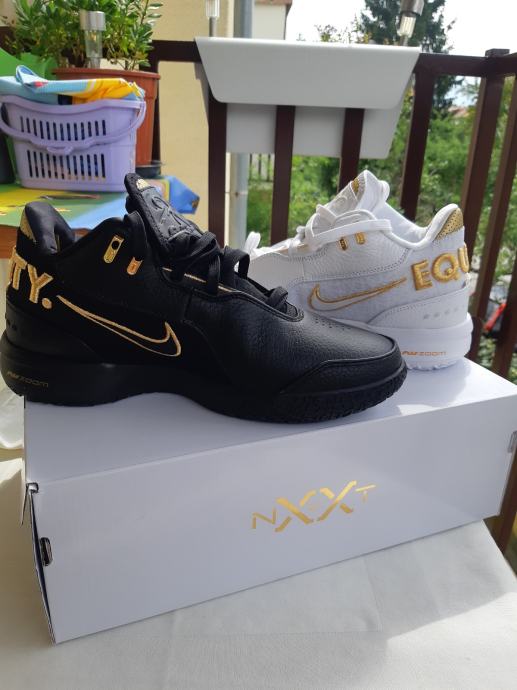 Prodajem potpuno nove Nike LeBron tenisice u veličini 42,5. Tenisice dolaze s etiketom i originalno su zapakirane. Dostupne su u dvije varijante boja - crna s zlatnim detaljima i bijela sa zlatnim detaljima. Obje verzije imaju karakterističan "EQUALITY" natpis na stražnjem dijelu.