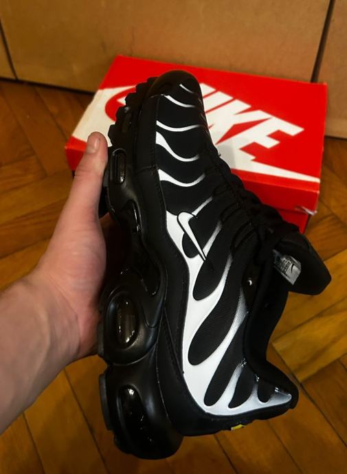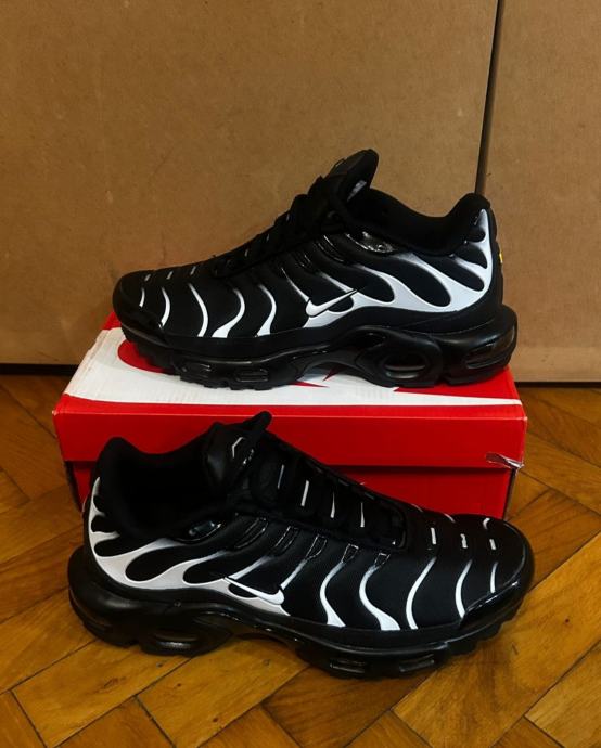 Prodajem Nike Air Max Plus TN tenisice u crno-bijeloj kombinaciji, veličina 44. Potpuno nove, s etiketom i u originalnoj kutiji.