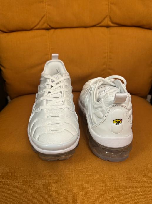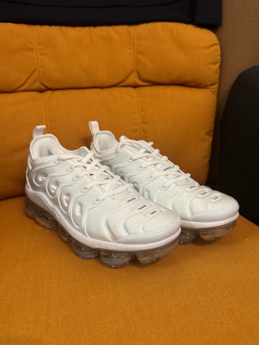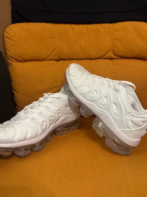 Prodajem potpuno nove Nike VaporMax tenisice u bijeloj boji, veličine 38, još uvijek s etiketom. Odlikuju ih prepoznatljiv dizajn s prozračnim potplatom i moderan izgled koji se lako uklapa uz svaki outfit.