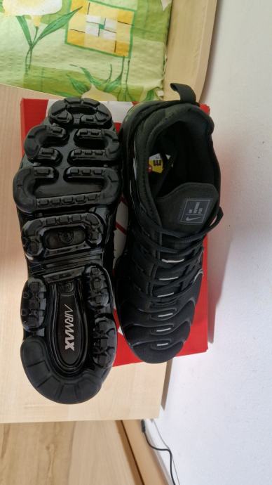Prodajem Nike Air Vapormax Plus tenisice u crnoj boji, veličina 43. Tenisice su potpuno nove s etiketom, nikad nošene. Dolaze s originalnom kutijom. Prepoznatljiv dizajn s karakterističnim jarkim poljazcima na VaporMax đonu koji pružaju izvrsnu amortizaciju.