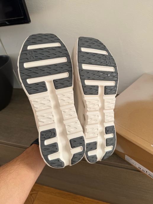 Prodajem On Running tenisice u veličini 43, potpuno nove s etiketom. Tenisice su u svijetloj boji s karakterističnim CloudTec đonom koji pruža odličnu amortizaciju i udobnost pri hodanju i trčanju. Gornji dio je izrađen od prozračnog materijala, a model ima prepoznatljiv dizajn s logom brenda na strani. Dolaze u originalnoj kutiji.