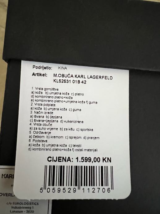 Prodajem Patike KARL LAGERFELD kupljene u xyz-u. Patike nosene samo jednom i to kad su se probavale.Cijena patika je 1600 a posto sam ih nosio svega jednom je 1350. Na slici takoder imate račun. Broj patika je 42