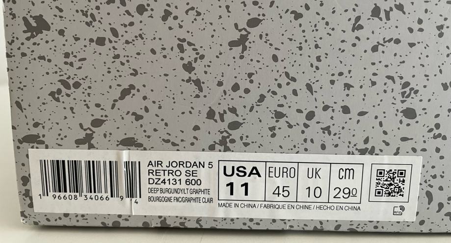 Prodajem muške tenisice Nike Air Jordan 5 Retro SE Deep Burgundy / Light Graphite broj 45 u jako dobrom stanju. Malo nošene.