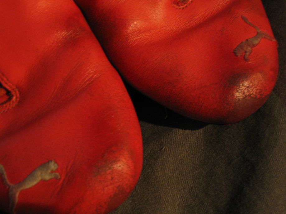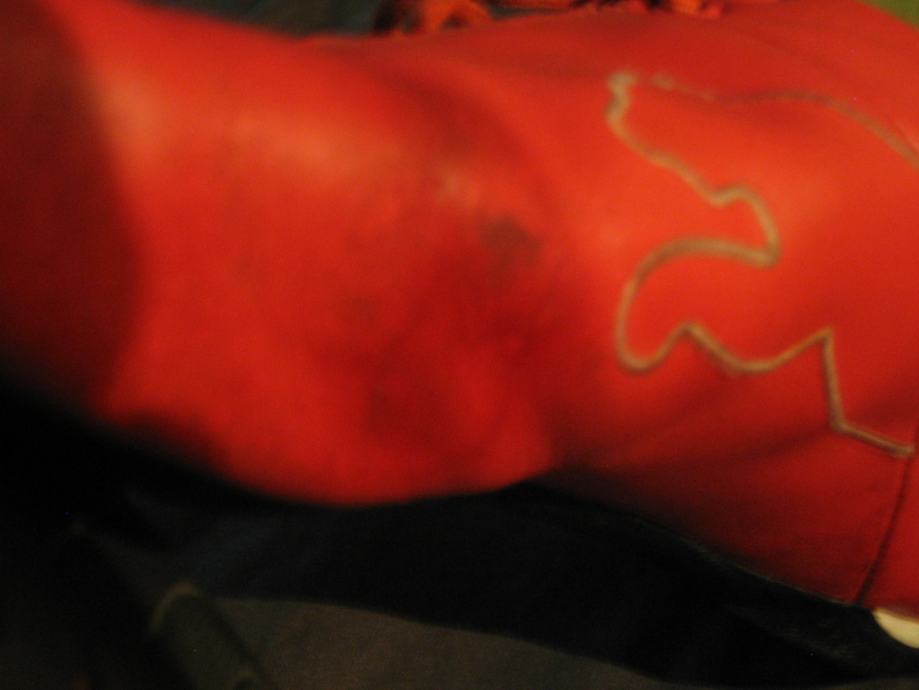 Imaju tragova korištenja na nekim mjestima se koža počela ljuštit, i malo je boja pustila u unutrašnjosti što se zna dogodit kod farbane kože.