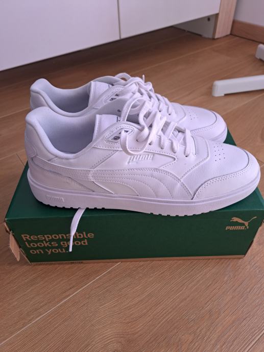 Prodajem nove i nekorištene muške tenisice PUMA Doublecort u veličini 44.5 i boji white-cool.