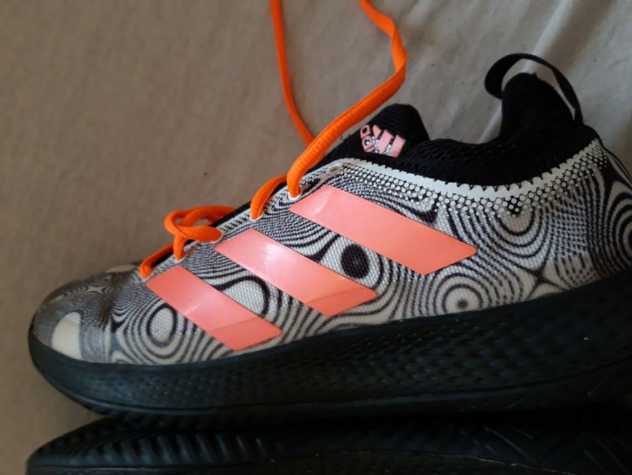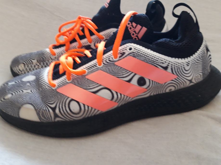Prodajem Adidas tenisice u veličini 42. Radi se o upečatljivom modelu s crno-bijelim uzorkom na gornjem dijelu, narančastim trakama i narančastim vezicama te crnim đonom. Tenisice su lagane i udobne, a dizajn ih čini lako prepoznatljivima.