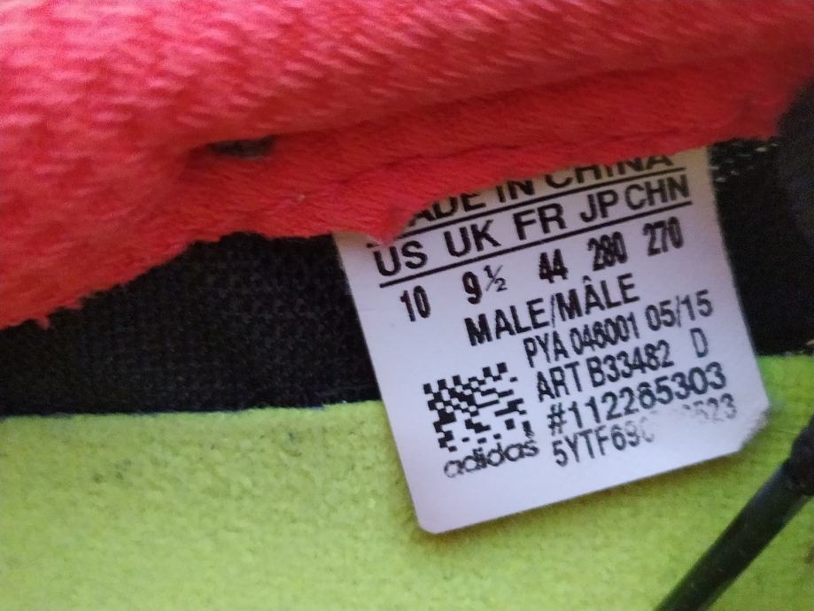 Tenisice muške "Adidas" br 44. Crna boje s bijelim Adidas znakom, crna unutrašnjost, crnim vezicama. Gornjište je od kože/textila, unutarnji dio je textil, tabanica guma. Lagane udobne patike za outdoor aktivnosti. Odlične kao nove.