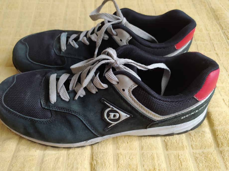 Tenisice muške "Dunlop" br 44. Plava boje s bijelim danlop znakom, plava unutrašnjost, bijelim vezicama. Gornjište je od kože/textila, unutarnji dio je textil, tabanica guma. Lagane udobne patike za outdoor aktivnosti. Odlične kao nove.